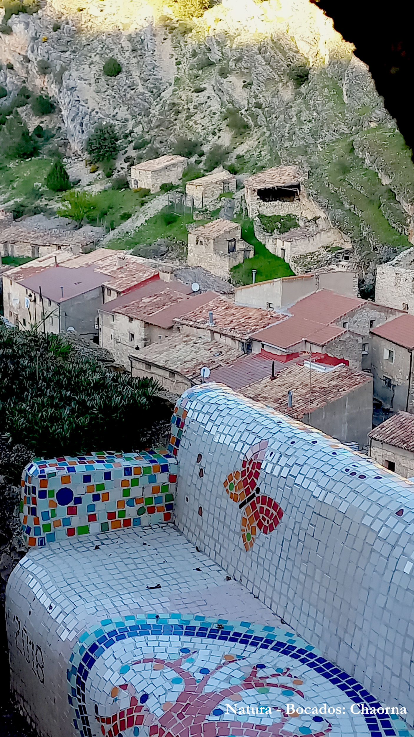 Doy un paseo sin rumbo por el pueblo, dejándome llevar por sus callejuelas tranquilas, hasta alcanzar la antigua atalaya que corona el lugar. Desde allí, las vistas son sobrecogedoras: el valle se abre en silencio bajo mis pies, y el viento parece contar historias olvidadas. Muy cerca, un curioso mirador con un balcón revestido en trencadís ofrece otra perspectiva, artística y singular, del entorno. Es imposible no detenerse, respirar hondo y dejarse envolver por la quietud de Chaorna.