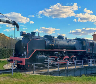 En mi mente, imagino el suave silbido del vapor elevándose, como lo hacía antaño, mientras una nube de humo se dispersa en el aire. Hoy, la Mikado reposa en silencio, inmóvil sobre la antigua placa giratoria, pero su presencia aún impone respeto. Su figura remite al pasado ferroviario de la zona, y los visitantes no pierden la oportunidad de fotografiarse junto a ella.
