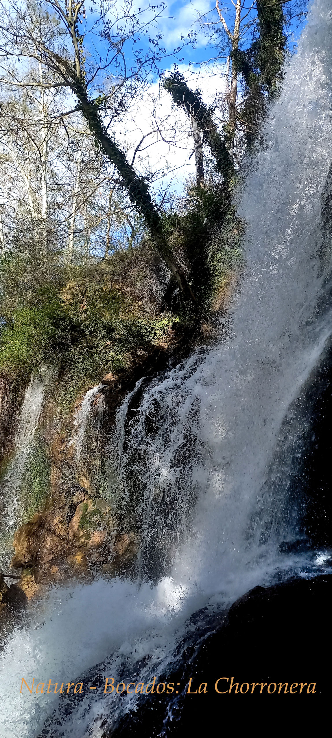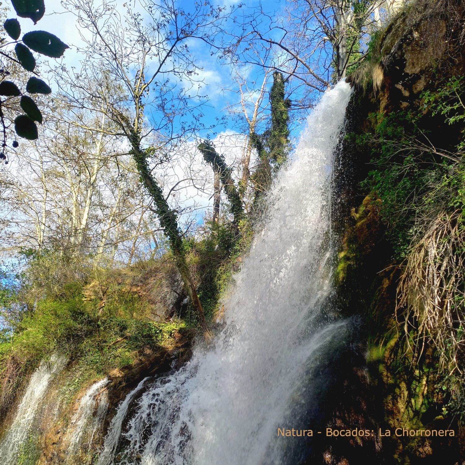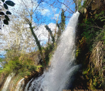 Con el camino a seguir claro ante mí, sigo adelante hasta que la Chorronera nos sorprende: una cascada de casi 20 m se desploma entre álamos y chopos, mientras el agua del río Blanco desciende suavemente por las rocas de travertino, cubiertas de musgo. El contraste con el paisaje árido es sobrecogedor. En este rincón fresco y sombreado, el murmullo del agua es un bálsamo, una invitación a detenerse, a tomar un “sorbito de agua” en plena naturaleza.