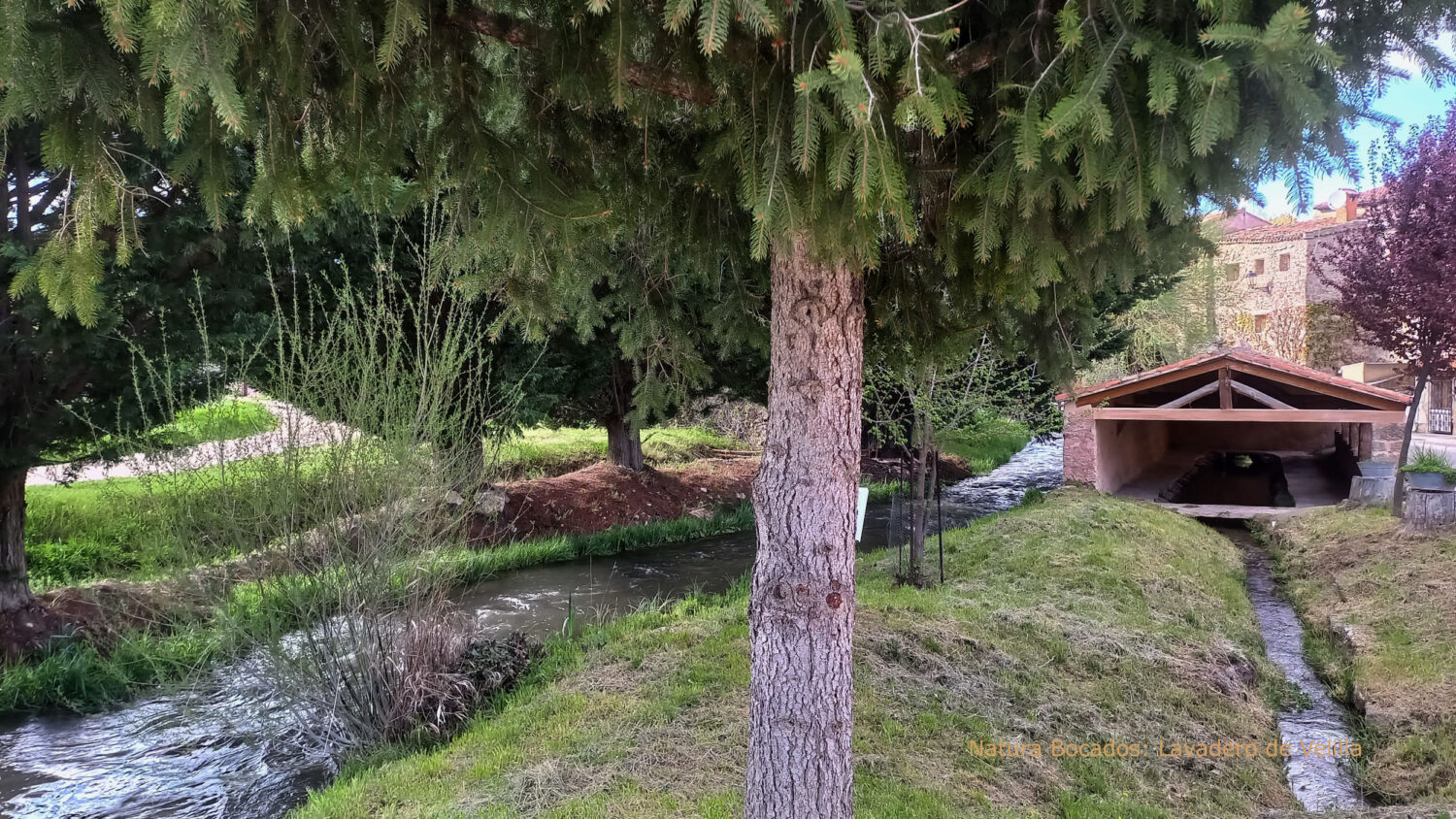 Al llegar a Velilla, el pueblo reposa bajo la luz dorada de la tarde. Me acerco al antiguo lavadero restaurado, donde el agua sigue fluyendo como antaño, susurrando recuerdos de manos laboriosas y conversaciones olvidadas.